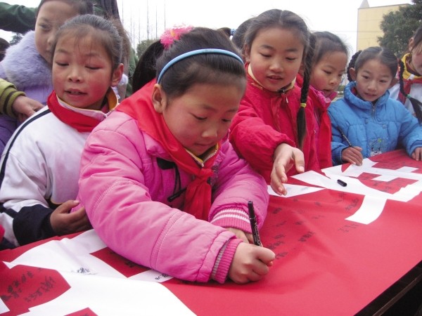 新学期,曾都区南郊瓜园中心小学开展了“爱护环境,讲究卫生,从自己做起,从现在做起,做一个文明的人、高尚的人”系列活动。3月8日上午,该校全体师生还在“环境卫生,从我做起”的横幅上庄重签下自己的名字,表明告别陋习,告别不文明行为的决心。 (本报记者 采阳 通讯员 唐政 屹立摄)