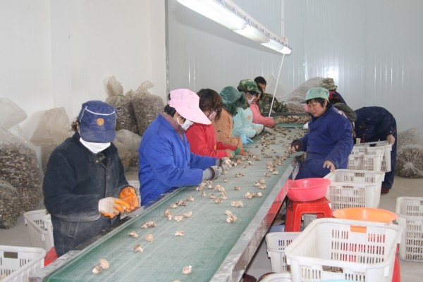 裕国公司殷店分公司自去年底开办以来,已收购十万多吨香菇。图为该公司人员筛选香菇。 (徐军国摄 陈金凤文)