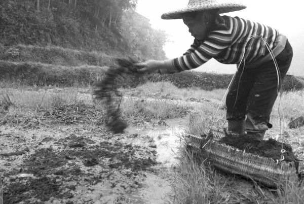 3月13日,广西三江侗族自治县一名农民雨后在田间施农家肥。当日,广西三江县下起了绵绵春雨,使当前的旱情有所缓解。趁着这场及时雨,三江县农民纷纷下田忙春耕。 新华社发