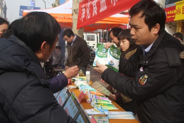 3月15日,工作人员在活动现场向市民介绍如何辨别伪劣商品。当日,我市工商、消协、质监等部门在城区解放路联合举行 “3·15”国际消费者权益日宣传咨询服务活动,现场接受消费者咨询投诉。(本报记者 杨闻名摄)