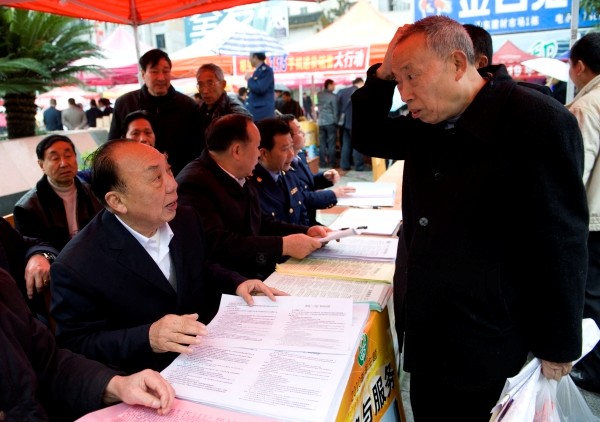 3月15日,老人们在垫江县街头接受消费者投诉。在重庆垫江县,有一支由17名老人组成的义务维权团。自2001年以来,这支全部由离退休老人组成的维权队伍,在当地工商部门的支持下,多次独立调查,义务为消费者维护权益,10年来已经为消费者挽回上千万元经济损失。 (新华社发)