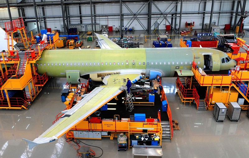 由中航西飞总装的首对空客A320机翼被装配在机身上。3月16日,由中国航空工业集团公司下属西安飞机工业集团有限责任公司完成总装的首对空客A320机翼在空客天津总装厂成功实现与机身对接。机翼质量及制造水平获得了用户的肯定。 (新华社发)