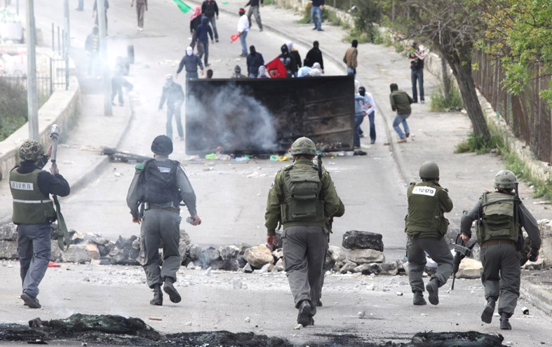 3月16日,在东耶路撒冷的一个阿拉伯村庄,以色列警察用催泪弹驱散巴勒斯坦示威者。当天,数百名巴勒斯坦人与以色列警方在东耶路撒冷数个地点发生冲突,至少30人被捕,数十人受伤。 (新华社发)