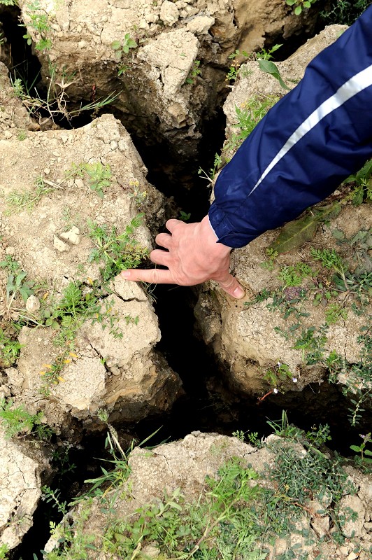 广西东兰县班丘水库库底土地因旱出现了10厘米左右的裂缝。广西干旱等级已经达到严重干旱。