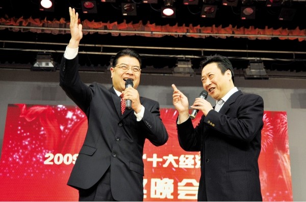 武汉说唱团团长陆鸣及其搭档许勇生动诙谐地表演相声《出口成章》