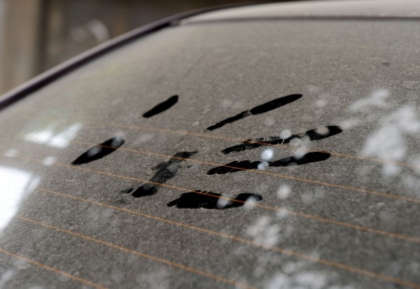 3月22日,福州一辆停放的汽车玻璃上落满了沙尘。自3月21日开始,福建出现罕见的沙尘天气。 (新华社发)