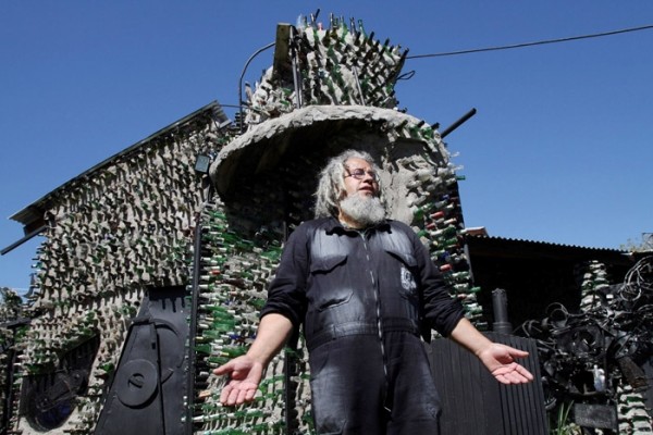 3月23日,在阿根廷布宜诺斯艾利斯省基尔梅斯市,阿根廷艺术家蒂托·因赫尼埃里站在自己建造的“瓶子屋”前。蒂托·因赫尼埃里用3万多个各种各样的瓶子搭建了这座风格独特的屋子。 (新华社发)