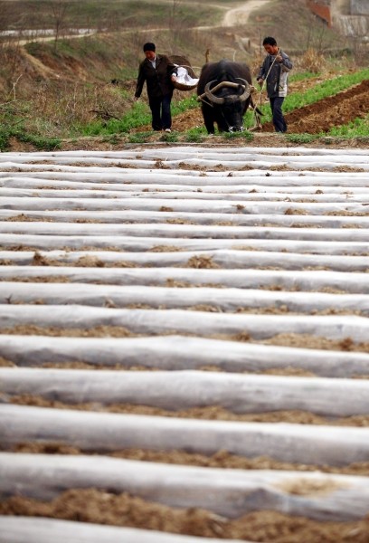 左图:25日,随县厉山农民正利用晴好天气进行春耕生产。农民们说,前几天的一场春雨非常有利于农作物的耕种。(本报记者 孙洪涛摄)