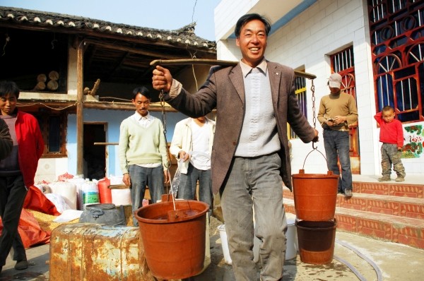 ▲前来陆建友家挑水的村民络绎不绝。