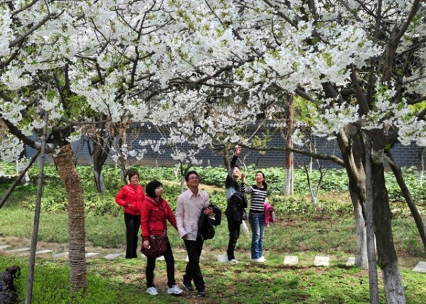 近日,随城白云公园150余株樱花树同时绽放,灿如彩云,吸引了众多游客前来观赏。 (本报记者 李文军摄)