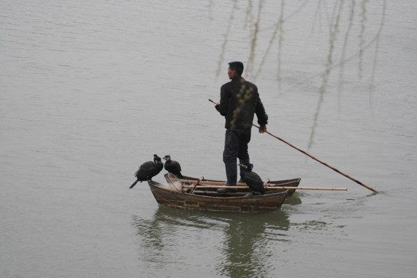 阳春三月,一渔民带着他的宝贝鸬鹚,在随城白云湖中捕鱼,让久违的鸬鹚捕鱼渔夫乐的场景再次重现。 (徐军国摄)