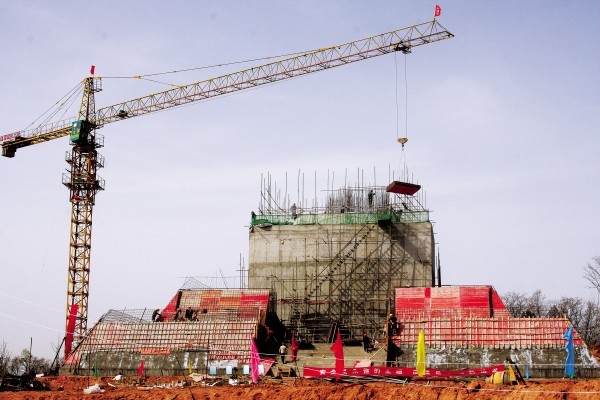 3月27日,随州市炎帝神农故里风景区紧锣密鼓地进行炎帝神农大像建设。大像由中国美院专家设计,大像底座边长56尺约18.67米,意为中国56个民族,底座高度为42.6尺约14.2米,意为炎帝神农诞生日农历四月二十六日,像高为95尺约31.67米,意为九五之尊。计划于今年5月底完工。 (本报记者 杨闻名 通讯员 龚承斌摄)