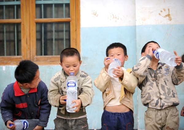 ◆3月30日,天峨县坡结乡龙凤村完全小学的同学们在品尝刚刚领取的纯净水。当日,一批爱心纯净水运送到广西特旱区天峨县坡结乡龙凤村完全小学。天峨县是广西特旱区之一,截至3月29日,持续的秋、冬、春连旱导致全县4.51万人饮水困难。 (新华社发)