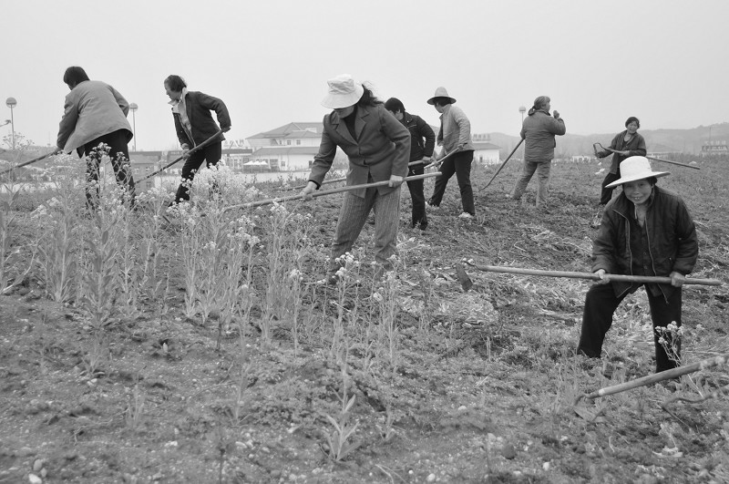 随县环潭镇九里岗村农民,抓住季节及时春管,施肥、整理农田,并以集中互助的形式,对大片的金银花基地突击除草。(本报记者 陈德友 摄)