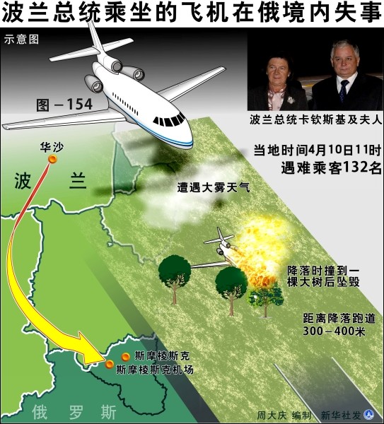 俄紧急情报部门证实,专机上共有96人,其中波兰代表团成员88人,无一生还。