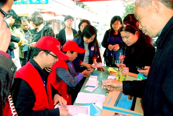 今年,我市有线电视数字化已全面实施,截止目前已完成七万五千户数字电视平移任务。随州广电网络分公司在三年内将投入一点五亿资金完成随州辖区内由模拟向数字电视转换工程,并逐步关闭光节点模拟信号。图为随州曾都支公司在随州城区各街道小区设立服务台,现场为客户办理安装数字电视机顶盒。(任尚海 摄)