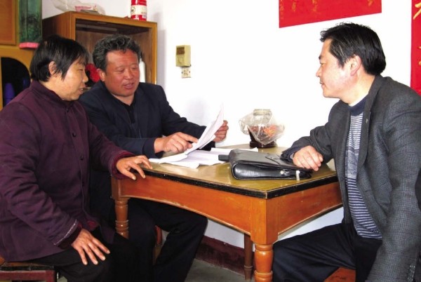 近日,随县安居镇财经所组织工作人员深入农村对全镇2010年度粮食种植面积进行调查核实,并宣传国家的惠农政策,鼓励农民发展粮食生产。图为镇财经所干部深入到王家沙湾村农户核实种植面积。(李晓洲 杨俊林 摄)