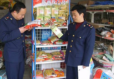 近日,曾都区何店镇工商所组织精干执法力量对辖区的种子、化肥、农药等农资市场进行打假专项检查,严厉打击各种违法经营行为,维护广大农户的合法权益。(本报记者 杨闻名 通讯员 童传连 摄)