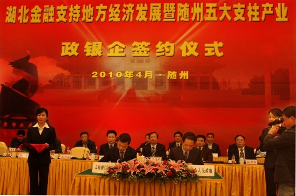 赵斌指出,省政府组织此次签约活动,对搭建更加有效、快捷、放心的融资平台,对政银企共建发展框架、共同实现发展,对缓解中小企业贷款难、金融机构难贷款,都将起到推动作用。今天的签约,是金融部门对地方经济实实在在的支持,也是随州改善金融生态、增强资金吸引力的结果。