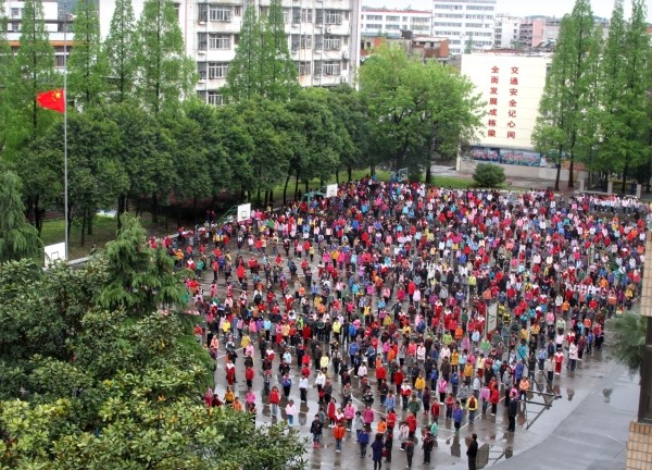 4月21日,曾都区实验小学近4000名师生在雨中参加降半旗仪式,深切哀悼青海玉树地震遇难同胞。(本报记者 杨闻名 通讯员 邱 方摄)