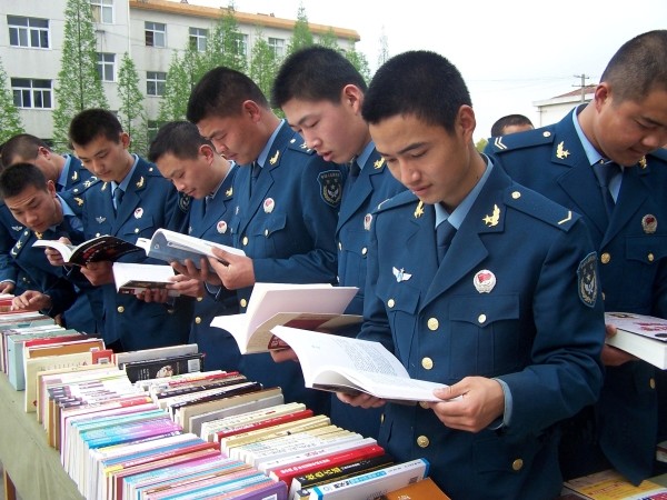 为配合驻广某部队建设学习型军队和培育知识型军人的活动,4月19日,省新华书店(集团)有限公司广水市分公司与该部联合举办了“好书进军营 成长伴我行”活动,通过现场捐赠图书和优惠售书方式,激发了广大官兵读书、爱书的热情,受到了广大官兵的热烈欢迎。 (本报记者 宋俊超 摄)