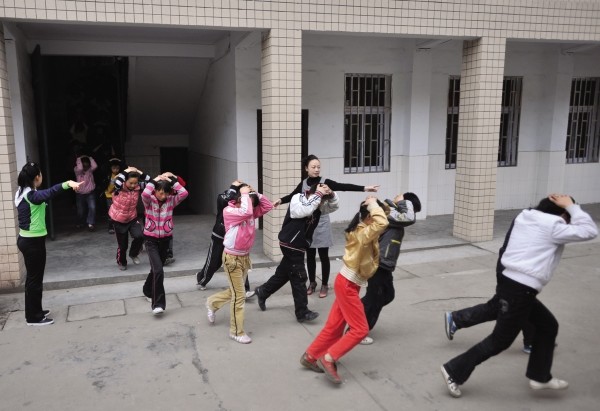 4月22日,曾都区聚奎门小学第四次组织全校学生进行地震逃生演练,1400余名学生全部撤离到学校操场中央仅用时2分47秒,比前次演练缩短时间1分多钟。(本报记者 李文军 摄 通讯员 陈立馗 文)