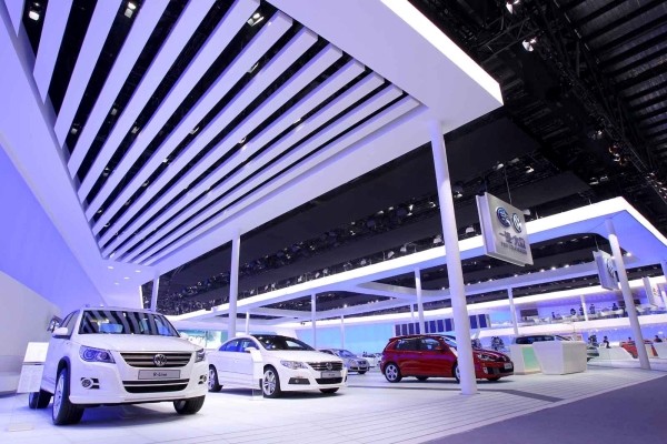 4月25日,2010年(第十一届)北京国际汽车展览会在北京国际展览中心向公众开放,吸引众多观众前往观看。图为展馆面积最大的大众展馆。 (新华社发)