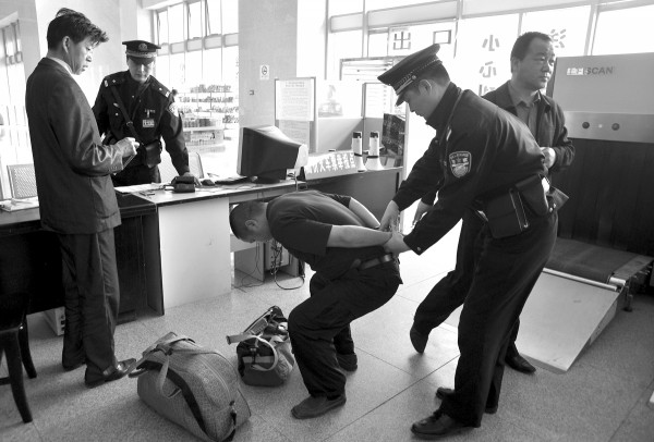 四月二十七日,随州火车站派出所民警在候车室入口处,抓获一名网上逃犯嫌疑人。(本报记者 李文军 摄 通讯员 郑晓明 文)