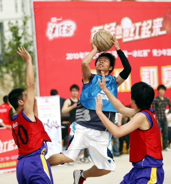 4月30日,庆“五一”2010湖北省第二届青少年篮球挑战赛随州赛区的比赛在随州职业技术学院举行。随州赛区的冠军将代表随州参加湖北省的比赛。(本报记者 孙洪涛摄)