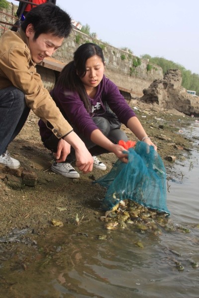 有人捉野生动物拿到市场卖钱,也有人用钱买来放归自然。4月30日,市民姚慧女士自掏腰包,将险些上了餐桌的数百只青蛙买下后,将其放生随城白云湖里。(本报记者 杨闻名 摄)