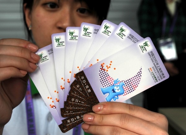 5月4日16时起,上海世博会正式对外出售夜票,仅限在园区各入口现场售票点销售。夜票是指在会期非指定日17时之后使用的个人门票。据了解,夜票每天的销售时间为16时至20时,价格为每张90元人民币。 (新华社发)