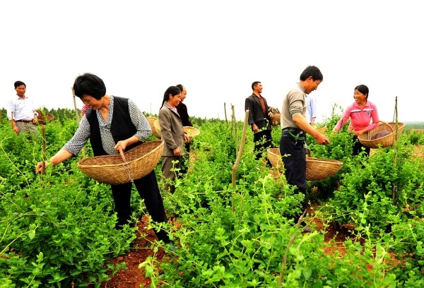 西安黄河制药有限公司和陕西省旬阳秦康药用植物工贸公司2008年在柏树湾村建立金银花基地,目前金银花已发展到1100余亩。据了解,金银花进入盛产期(3年后)每亩收益达5000元。 (本报记者 李文军摄)