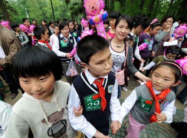 5月16日,盲童们在爱心小伙伴的引导下参观植物园。当日是全国助残日,来自南京几所小学的150多名学生和南京市盲人学校的50多名盲童欢聚南京中山植物园,开展“我是你明亮的眼睛”爱心结对活动。盲童们和结对小伙伴一同联欢、交流,并在小伙伴的陪伴下参观植物园,感知美丽的春天。 (新华社发)