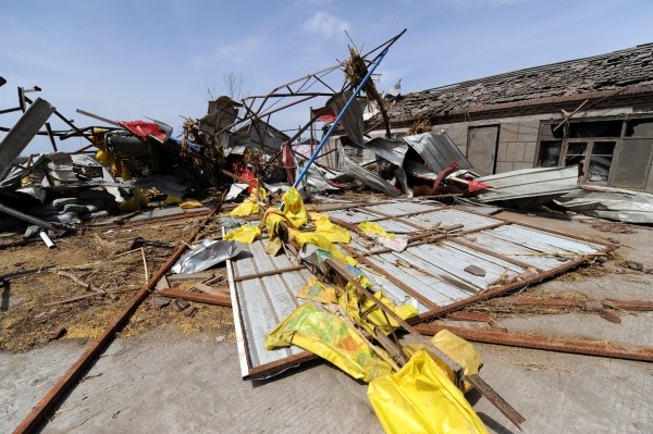 图为:5月16日,绥化市三井乡新泉一组的一处收粮点被大风吹毁。 (新华社发)