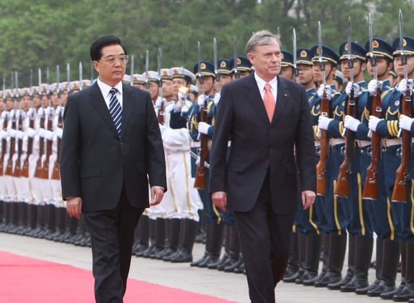 胡锦涛欢迎德国总统克勒访华