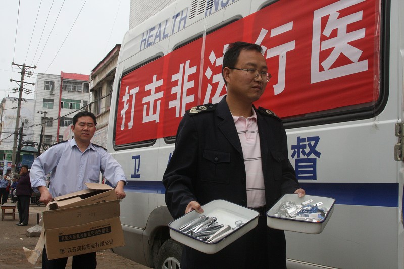 昨日,市卫生执法人员收缴了一批药品及医疗器械。为切实维护广大群众的切身利益,市卫生监督局联合公安等部门开展医疗市场整治,当日查处五家非法行医点。(本报记者 杨闻名 通讯员 梅仁波 摄)