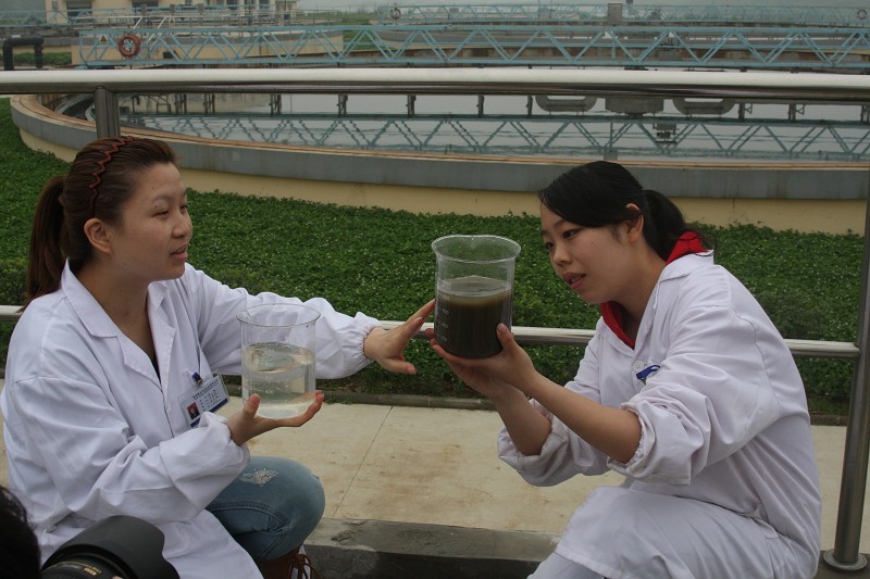 五月十六日,市污水处理厂工作人员在污水处理池旁取水质观测。据介绍,随州市污水处理厂运行以来,开局良好。截至四月底,已达标处理污水五百七十一万吨,消减COD(化学需氧量)一千一百八十吨。(本报记者 杨闻名 摄)