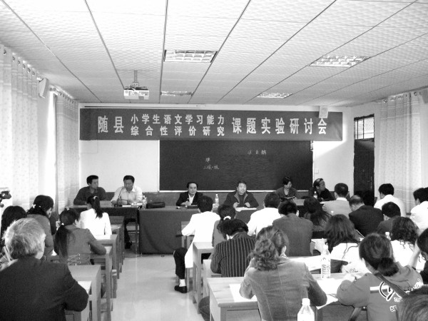 市教研室主任杨中山,随县教育局副局长彭静,教研室主任赵延河到草店镇中心小学参加教研会。