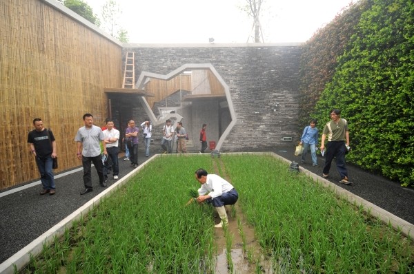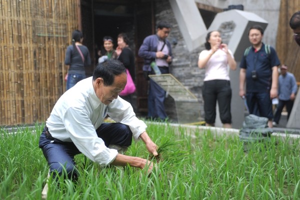 上海世博园宁波滕头案例馆是本届世博会唯一的乡村实践案例,二楼和楼外都有水稻田,而72岁的陈佰俊老人就是负责打理这近一亩水稻田的“老农民”。陈佰俊老家在浙江省松阳县,做了一辈子农民,这次经介绍来到滕头案例馆管理水稻田。从3月底开始,老人就一直精心培育着这片稻田,从最开始的填土、引水、翻土,到后来的播种、覆膜、育苗、分苗插秧、施肥、除虫,一个程序都不少,陈佰俊已经忙碌了近两个月。
