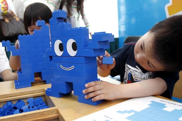 5月30日,5岁的龚震在参加搭“海宝”积木比赛。当日,“童乐世博——2010年上海市少年儿童庆祝国际儿童节博览会”在中国福利会少年宫举行。小朋友们以丰富多彩的活动,体验“世博”和“环保”两大理念,尽享节日快乐。(新华社发)
