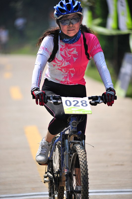 右图:一名参加女子大众山地组的女选手在比赛途中。