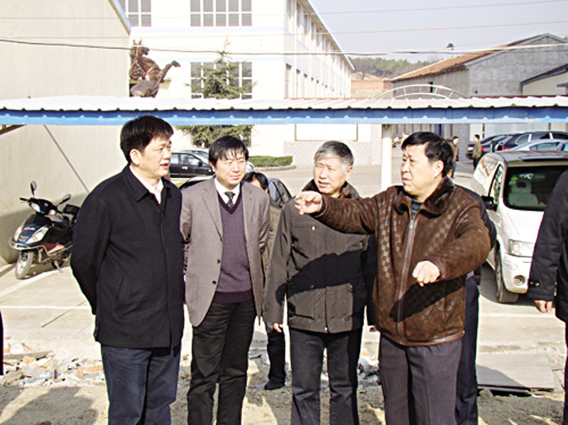 广水市委书记李耀华(左一),广水市委常委、纪委书记周德明(左二)视察双剑风机