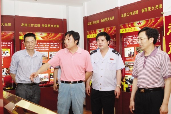 广水市委常委、纪委书记周德明(左二),纪委副书记、监察局长汪维礼(左一)到广水地税局调研廉政文化建设。