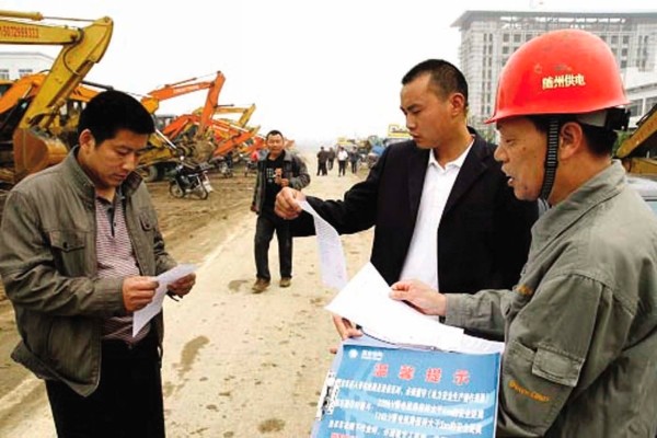 5月30日,随州供电公司安保人员先后到吊装公司、吊装租赁市场、高速公路施工现场,为大型机械作业人员普及讲解电力安全知识、张贴安全提示。 (陈耀 阮明超摄)