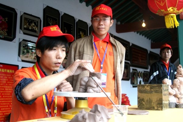 民间艺人展示玩泥制陶