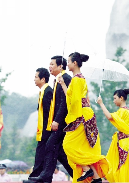 海峡两岸关系协会会长陈云林、国务院侨务办公室副主任赵阳、中华炎黄文化研究会第一副会长张文彬敬献花篮