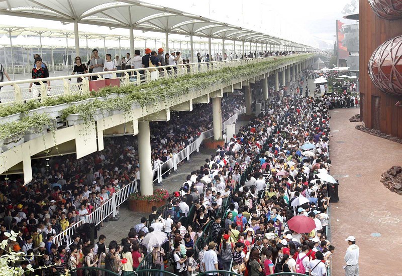 上 图:6月14日,游客在澳大利亚馆前排队等待参观。据上海世博会官网统计,截至当日14时30分,世博园累计入园人数达1401.72万。