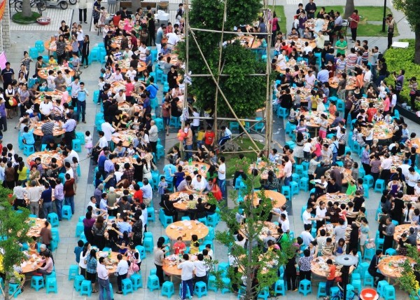 右上图:6月13日,温岭市太平街道南屏社区居民共享百家宴。当日,浙江省温岭市南屏社区举行邻里百家宴迎端午活动,600多位居民将自家的私房菜端出来与邻居分享,感受社区大家庭的和谐与温馨。