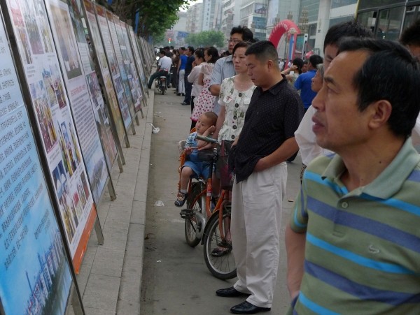 2010年世界华人炎帝故里寻根节大型图片展近日在随州城区解放路连续展出,20余个市直单位600余幅图片参展,充分展示了寻根节开幕式的盛况以及近年来我市经济、社会发展状况,吸引了众多市民驻足观看。图片展由市民间文艺协会、随州日报社、随州海天广告公司承办。 (本报记者 李文军摄)