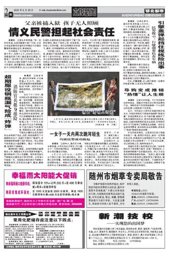 本报讯 记者毛传荣报道:“我一定好好改造,出狱后跪谢大恩!”日前,正在沙洋监狱接受改造的刘华楷在与办案民警黄桥波通电话后,真诚地说。 刘华楷是广水市城郊乡富康村人,妻子早亡,有两个